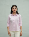 Coral pink is a straight fit dress shirt with a two piece collar, cuffs and a front placket. It is tailored in cotton fabric with fine lines.