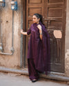 The shade everyone should wear - this deep falsa purple cotton canvas is decorated with a fully embroidered round neckline. The short shirt features quarter sleeves (which can be elongated or shortened to your like). It is paired with the finest and most manageable organza dupatta and a modern loose shalwar.