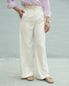 Frost is a wide leg silhouette dress pants with side pockets and front pleats. It has a high rise waist and wide legs. It is tailored in tropical fabric.