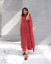 Mandarin- a 3 piece dress adorned with light tilla embroidery panels and lace details. It is the perfect mid season outfit!
