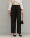 Noir is a staright fit silhouette dress pants with side pockets and front pleats. It has a high rise waist and straight legs that hits just below the ankles. It is tailored in tropical fabric.