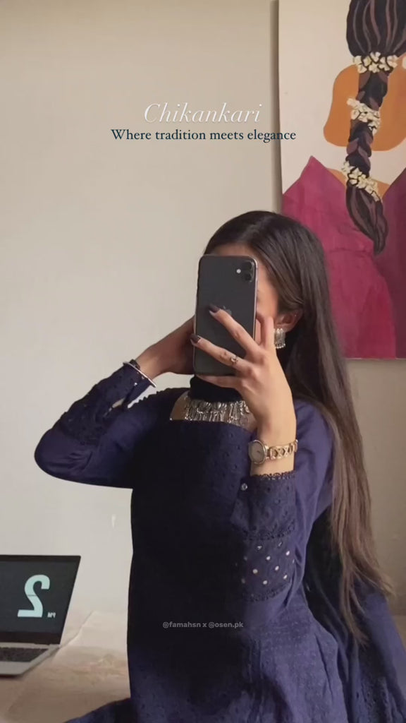 Fully embroidered A line shirt. Paired with culottes and embroidered chiffon dupatta